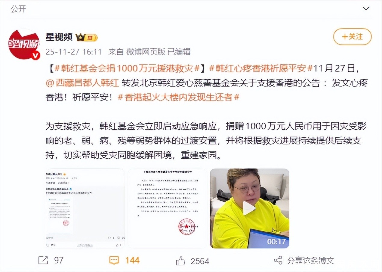 没想到因为这次香港大火,让韩红狠狠打脸了举报者。